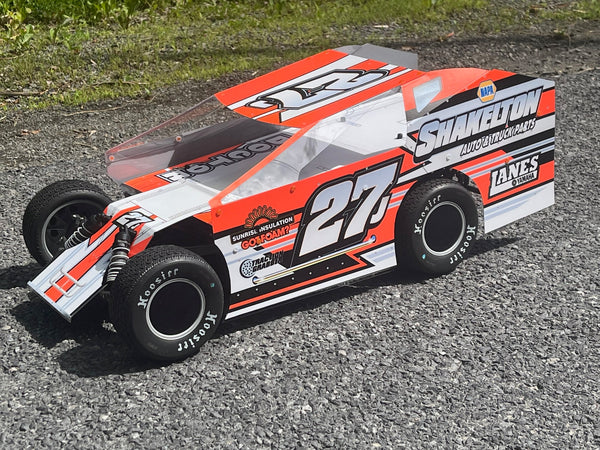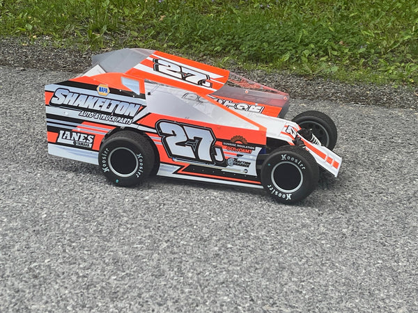 K1000SC#27J - Eastern Dirt Modified Body Wrapped with Danny Johnson Theme Body. Made to fit the 1/10th scale Traxxas Slash 2WD Short Course trucks. Partially assembled for shipping purposes. This is a Kipps K1000SC Body,