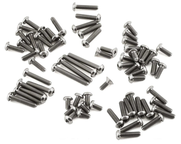 Our HyperLite Schumacher Cat L2 EVO 2.5mm Deep Socket Titanium Screws are made from Grade 5 Titanium. Screw Kit is a 73 piece upgrade that includes the screws needed to replace the stock hardware in the upper half of the chassis.