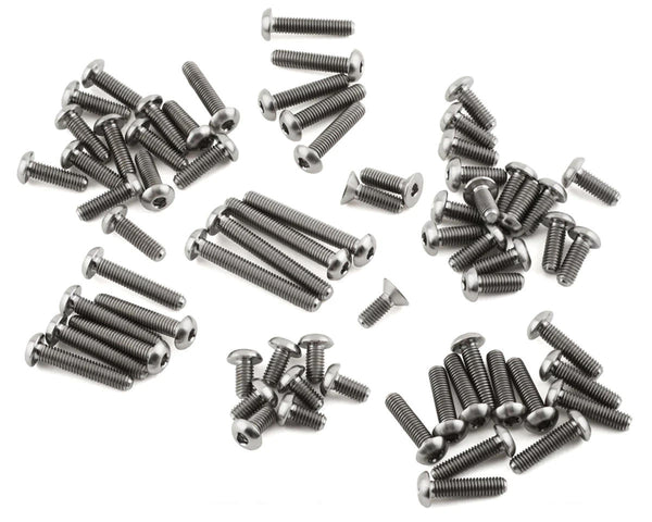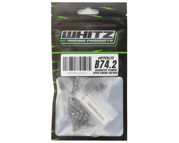 Our HyperLite Team Associated B74.2 / 74.2D 2.5mm Deep Socket Titanium Screws are made from Grade 5 Titanium. Screw Kit is a 69 piece upgrade that includes the screws needed to replace the stock hardware in the upper half of the chassis.